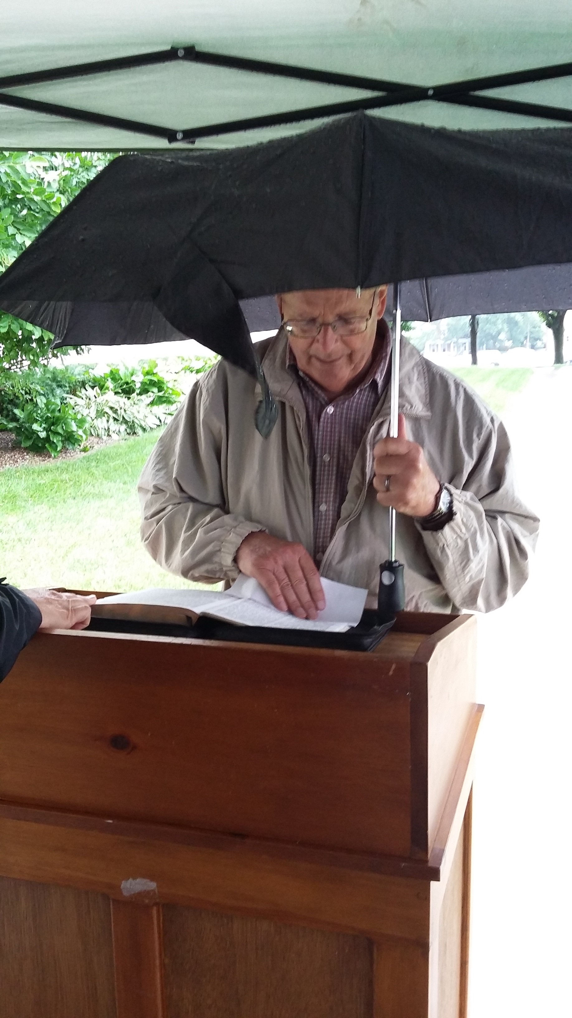 I woke up with a shout of the first readers name on my lips and leaped into action.That was the fastest shower ever, and I know the dog looked at me like I was a crazy person when I shoved him out the door! I dressed, then drove quickly to the court house, arriving a scant three minutes before my first reader. Podium and Bible in place, she began to read while I unpacked the truck and began setting up.